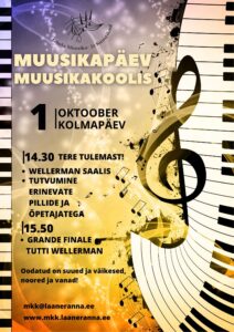1.oktoober on rahvusvaheline muusikapäev. Lihula muusikakooli võib sel päeval tulla tutvuma erinevate muusikainstrumentide ja meil õpetavate õpetajatega.